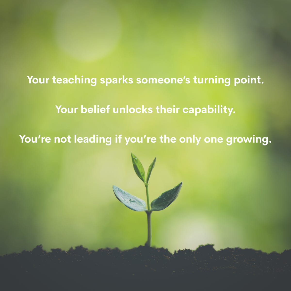 Leaders stop teaching the moment they stop learning. The more you learn, the deeper your repository will be for things you can share and help others with. It’s a beautiful cycle of give and take.